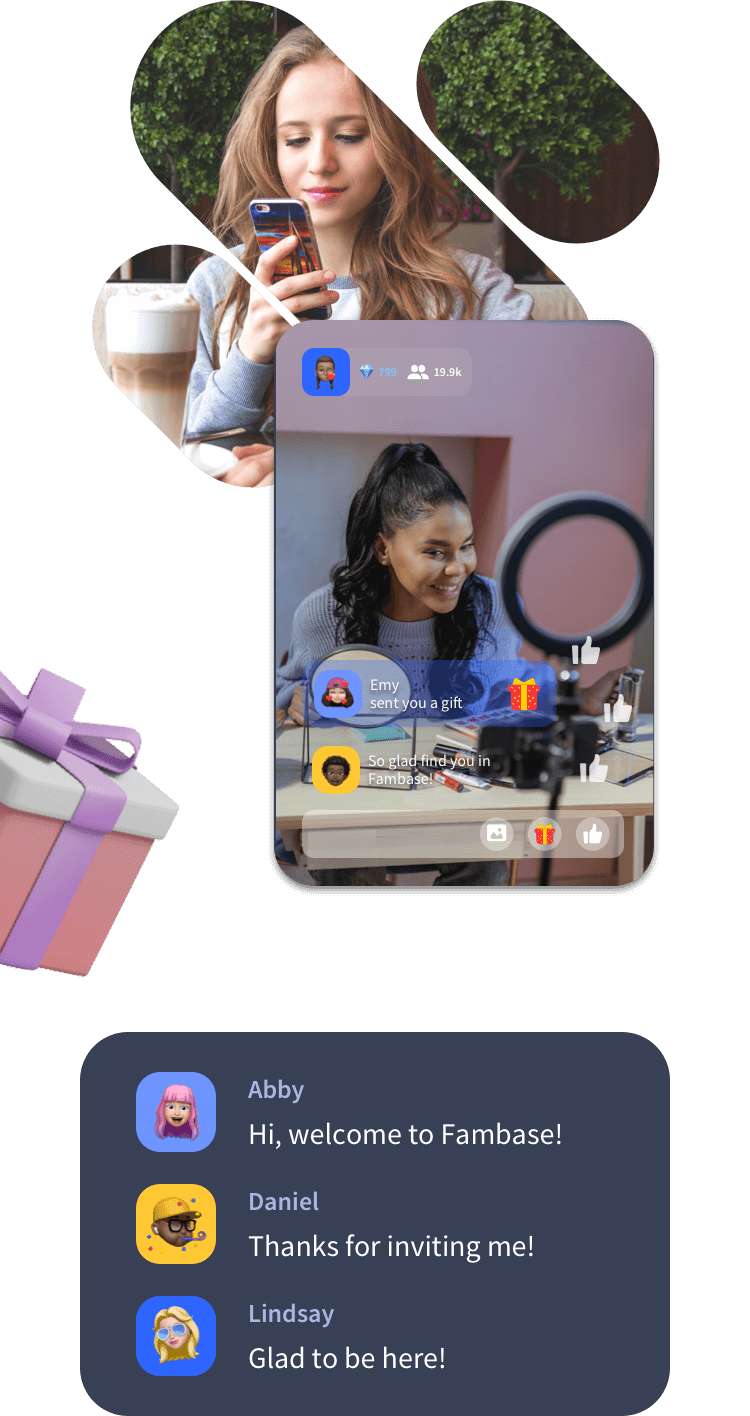 Fambase is an all-in-one app allowing you to go live together with the people you like, chat at once, send and receive gifts. Create your own groups, share the content which really matters and enjoy communication in a warm and cozy way.